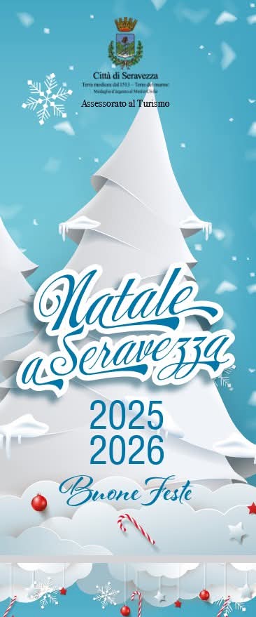Presepi:Presepe di RuosinaVia Provinciale dall'8 dicembre 2025 al 6 gennaio 2026.Orari giorni feriali dalle ore 9:00 alle ore 12:00-dalle 16,30 alle 19:00, festivi dalle ore 9:00 alle are 12:00.Presepe di CafaggioVia Cafaggio angolo Via Giannetti dall'8 dicembre 2025 al 6 gennaio 2026 De Abbraccio della satıra alla natività. A cura delle presenti di Cafaggio.Presepe del Gruppa per ServireQuerceta, Opera Cardinale Maff, via GalleniLa Natività nella Versilia Storica: un Presepe animato da oltre 100 movimenti elettromeccanici che rappresentano arti a mestieri della Versilia Storica dei primi del '900. Dal 24 dicembre 2025 al 6 gennaio 2026. Drart feriali dolle are 15.00 alle ore 18.00, festivi dalle ore 15:00 alle arv 19:00.Presepi della Croce BiancaQuerceta, Sala conferenze Croce BiancaMostra di presepi artistici dal 20 dicembre 2025 al 6 gennaio 2026 inaugurazione sabato 20 dicembre ore 16.30. Dalle 8:00-12:30-15:30-18:00 A cura del Gruppo Presirti Cruce Blanca QuercetaMostre:Sarmızza, Galleria La Seravezza, Piazza CarducciDal 27 dicembre all'11 gennaio 2026 Mostra Personala pitturica e stal tarea di Sigfrido Camacho Briceño (Vertissage 27 dicembre ore 17:00). ingressa libero tutti i giorni dalle ore 16:30 alle ore 18:30 (domenica anche 11:00-13:00-gioved chano).Seravezza, Palazzo Mediceo - Piano NobilnDal 29 novembre 2025 all'11 gennaio 2026Un Giorno dopo l'altroMostra collettiva a cura di Marcario Arte Contemporanea Inaugurazione sabato 29 помотоге - оге 16:00giorni e orario di aperture: sabato e domenica 15:00-19:00 8-26 dicembre 15:00-18:00 12,5,6 15:00-19:00-Ingesso MaraQuerceta, Piazza Matteotti (Monuments), 13 e 14 dicembre, Esposizione artistica a cura dell'Associazione Saravezziana EventiLa domenica del contadinoUn marcata contadino dal campo alla tavolaTutte le domenica mattina dalla ars 09:00 alle ors-13:30A partire da domenica 30 novembre 2025 fine a domenica 4 gennaio 2028.A cara del Centro Commerciale Naturale à Seravezza DicembreSabato 6Querceta, Piazza Matteotti dalle ore 8:00 alle ore 18:00 Mercatino di Natale per hobbisti. A cura di Quercetarte.Domenica 7Ripa, Piazza Europa dalle ore 10:00 Mercatino di Natale con gli hobbisti di Quercetarte, stand gastronomici e alla sala della musica Yoga a fraba per bambini. Dalle ore 15:00 esibizione dei piccol musici e shandieratari del gruppo Gioco della Torre, Caccia al tesoro a esibizione à Mangiafuoco. A cura della Contrada La Lucertola.Lunedi 8-Palazzo Medicen, Sala Cosimo 1 ore 16:30SepulvedaOpera breve il Segreto di Susanna di Ermanno Wolf-Ferrari. Pianoforte Susanna Nucci, saprane Latizia Bartald, haritom Gonzale GodayPreceduta da presentazione del critico musicale Mattia Marino Marlo. A cura di Circolo Versilia Amici della Lirica Bacomo Puccini Info o prenotazioni al 3487646117.Sala Salvatori, Pro Loco Seravezza Via Del Greco dalle ore 15:30: C'era una volta Babbo Natale. A cara della Pro Loco Seravezza.Venerdi 12Quumo Santi Lorenzo e Barbara Seravezza, ore 21:15Voci per la Pace. Concerts Lirico Sinfonico in occasione del Natale. Soprano Elisabetta Della Sasta, Tenure Fabio Cardella. Violino Valeria Barsanti e Marina Dul Fava, Viola Tommaso Valenti, Violoncello: Roberto Presepi, Contrabbasso Salvature La Rosa, Pianoforte Gabriele Bascherini Partecipano i ragazzi della scuola Munt voci Diafenia di Maurizio Castagnini drutti dalla Maestra Stefania Guti e accompagnati al pianoforte dal Maestro Luca Parue cioni. A cura dell'Assessorato al Turissa e della Pro Loco Seravezza.Sabato 13Gustagnana, dalle ore 15:00La Casina di Babbo Natale. A cura della PA. Giustagnana.Domenica 14Oratorio di Ripa, Piazza Europa, ore 17:00Concerto di Natale. A cura della Filarmonica Basilio Stagi di Ripa Basati dalle ore 16:00 visita la Casa di Babbo Natale (nel contro del paese) o in concomitanza presso la pubblica assistenza, i Laboratorio di Babbo Natale per bambini. A cara dalla PA Basati.Martedi 16Seravezza, Scuderia Granducali ore 21:15, Filomena Martoriata, con Antonio Mec-chers a Lora Santini. A cura dello Associazioni Cultural Versiglia in bocca a Torsicare, con la collaborazione della Fondazione Torvo Modicae, info o prenotazioni: 3357892895-3348697722Mercoledi 17Seravezza, Scuderie Granducali ore 21:00 Concerto della Filarmonica di Riomagno.Venerdi 19Ripa, Chiesa Sant'Antonio, ore 18:30Sister and Brother Chair Ensemble with Carla Jane in: The Gospel Night. A cura dell'Assessorato al Turismo.Sabato 20- Seravezza, Palazzo Mediceo, ore 16:30 Visita teatralizzata di Palazzo Mediceo Brindiamo alle feste con la Granduchessa Maria Cristina à Lorena e Catarina De Medici, regina di Francia, info e prenotazioniwhatsapp 3385741081-3451883348.Querceta, Chiesa Santa Maria Lauretana, ore 18:30Recital al pianoforte del Maestro Sandro Ivo Bartali. Special guest Delira Fast Vulne A cura dall'Assessorato al Turismo.Chiesa di San Martino a la Cappella alle ore 21:00. Concerto di Natale. A cura della Filarmonica di Azgınn.Querceta, Via Cocche 108/A ore 21:00 Officina Futura presenta: Het Strings. feat. Marco Poggiolosi & band. Omaggio a Django Reinhardt. Info a prenotazioni3929062967.Martedi 23- Querceta per le vie del centro, dalle are 16:30 Bahho Natale con il suo miccio. A cura di La compagnia del miccio, in collaborazione con Radio C.B. Nuova Azzura Basati dalle 17:00 Ponche e cioccolata calda sulla piazza della Chiesa per scambiarsi gli auguri di Natale. A cura della PA. Basati28in Jazz, tofa e prenotazioni: 3929062967. Ripa, Chiesa di Sant' Antonio ore 21:15Palazzo Mediceo, Sala Casime 1 ore 18:30 Officina Futura presenta Portrait Galà Lirico di fine anno della Corale Polifonica Vercellese A cura dell'Assessorato al Turismo.Gennaio 2026Sabato 3Querceta per le vie del contra, dalle ore 16:00 passerà La Befana con il suo miccio. A cara di La compagnia del miccio, in collaborazione con Radio C.B.Domenica 4Seravezza, Palazzo Mediceo, ore 16:00. La casa della Befana.La Befana accompagnerà i piccoli visitatori alla scoperta del Museo del 