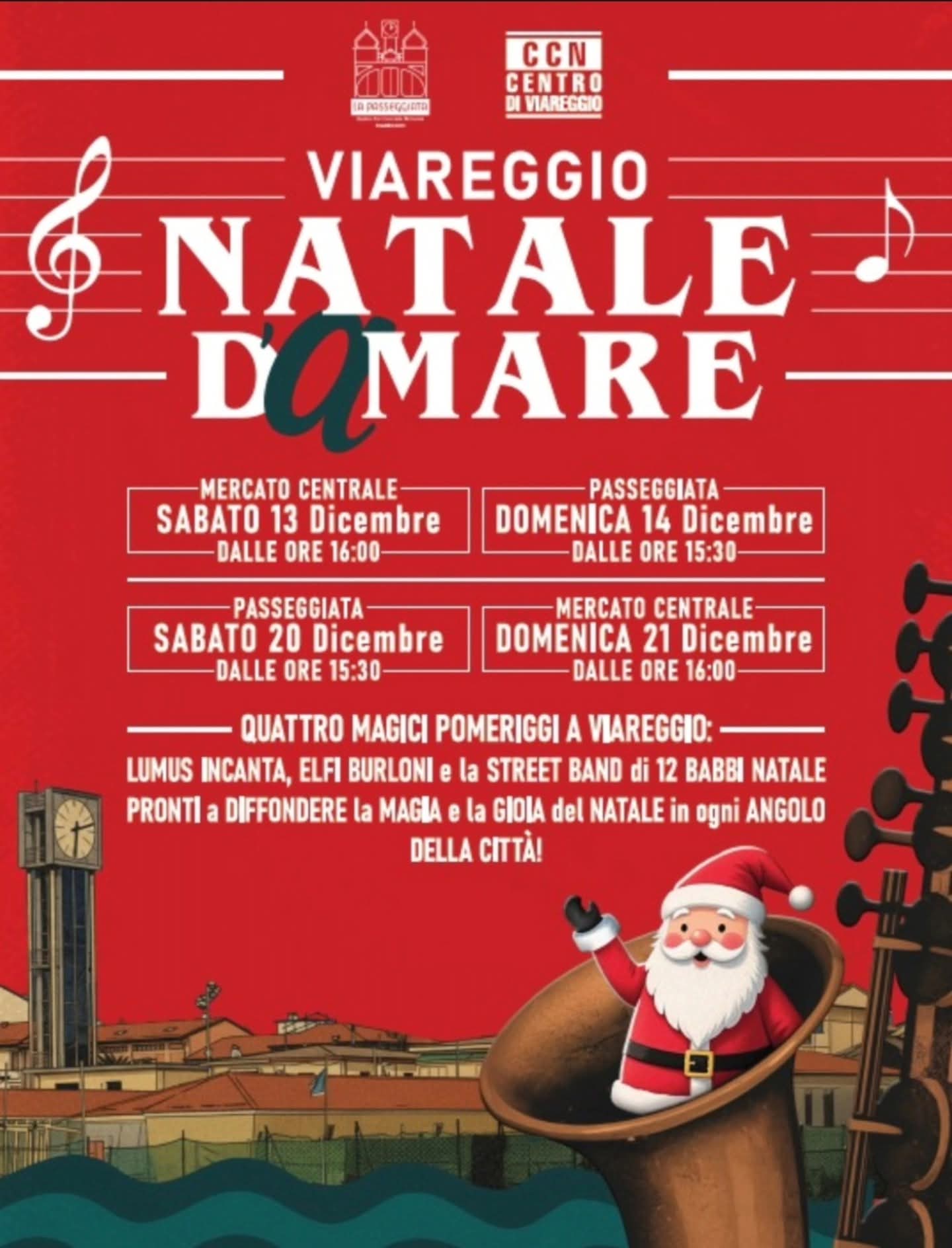 🌟 UN MESE DI LUCI, MUSICA E FESTA PER TUTTA LA CITTÀUn programma ricco, pensato in spirito di collaborazione tra Comune, associazioni, commercianti e partecipate: musica, teatro, letteratura, mercatini, attività per bambini e tante iniziative per vivere insieme la magia del Natale.💡 Illuminazioni 2025Luci natalizie e nuovi alberi decorativi illumineranno un’area urbana più ampia, grazie anche a ICare e Mover. Gli impianti saranno dotati di temporizzatori per ridurre l’impatto energetico.🎄 L’ALBERO DI NATALE IN PIAZZA MAZZINIAccensione ufficiale venerdì 5 dicembre alle ore 18, accompagnata dal coro femminile Donne In Canto.Novità 2025: albero di Natale anche sul belvedere di Torre del Lago!🎶 MUSICA ED EVENTI PER TUTTO DICEMBREStreet band Chicchi d’Uva, Corale Puccini diretta dal M° Marco Trasatti e tanti altri appuntamenti ogni weekend tra Passeggiata, via Fratti, via Battisti e piazza Cavour.In programma anche mercatini artigianali, spettacoli teatrali, iniziative solidali e attività per i più piccoli.🎡 LUNA PARK E PISTA DI PATTINAGGIO• Piazza d’Azeglio: torna il Luna Park con 14 attrazioni dedicate ai bambini.• Piazza Margherita: confermata la grande pista di pattinaggio, attiva fino a gennaio, con promozioni per le scuole e intrattenimento per i giovani.👧 TOSCANA KIDS – 20 e 21 dicembreNel foyer del Gran Teatro Puccini, dalle 10:30 alle 18:30: laboratori creativi, letture animate, spettacoli e tante attività gratuite per famiglie e bambini, in collaborazione con l’associazione AllegraMente.🎭 TEATROIl 20 dicembre (ore 21) e il 21 dicembre (ore 17) al Teatro Eden: “Vado A Vivere Con Me” di e con Jonathan Canini, con la supervisione di Walter Santillo.🎆 SAN SILVESTRO VISTA MARE – 31 dicembreDalle 22 in Piazza Mazzini: musica anni ’80-’90 con “80’ 90’ e dintorni”, gadget, animazione e spettacolo pirotecnico a mezzanotte a cura di Pirotecnica Morsani.A seguire DJ set di Radio M2O con Ale e Lorenzo Lippi fino alle 2.Presenta Daniele Maffei, con incursioni di Giusy Muratore.🎼 CONCERTO DI CAPODANNO – 1 gennaioAlle 12 all’Auditorium Caruso: Orchestra del Festival Pucciniano diretta da Silvia Casarin Rizzolo. Ingresso libero su prenotazione.👟 CORRI E CAMMINA CON LA BEFANA – 6 gennaioDalle 9, corsa di 7 o 10 km oppure camminata “dog run” di 7 km tra Pineta di Levante, Viale dei Tigli e Villa Borbone, in collaborazione con ASD Viareggio Run.✨ Viareggio e Torre del Lago ti aspettano per un Natale ricco di emozioni, eventi e magia.
