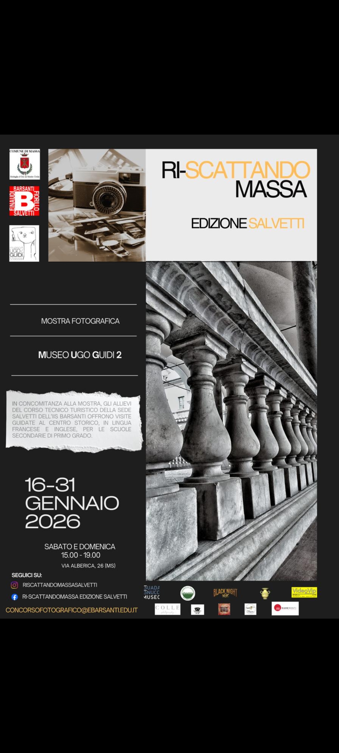 Concorso fotografico,esposizione presso MUG2- MassaMUG2 è orgoglioso di presentare e ospitare il quarto appuntamento del concorso fotografico Ri- scattando Massa, racconto prezioso per la Città di Massa- proposto al pubblico attraverso lo sguardo attento e propositivo di giovani promesse della fotografia.Un’occasione per narrare il territorio apuano che è stato affidato al gruppo studenti dell’Istituto E. Barsanti di Massa.Apertosi il 13 ottobre 2025 con grande attesa da parte di alunni delle classi e di visitatori presso il Centro Commerciale Maremonti di Massa, il concorso fotografico, patrocinato dal Comune di Massa, è stato pensato e gestito dagli studenti della classe 3° B del corso Turistico IIS ’E. Barsanti’.Fino al 23 novembre, residenti e non residenti nel Comune di Massa, studenti fino a 14 anni e studenti oltre i 14 anni hanno potuto partecipare inviando all’Istituto una fotografia scattata sul territorio massese per candidarsi al premio previsto per ciascuna sezione.Le immagini pervenute sono state pubblicate, secondo un regolamento, sulle pagine social dedicate. Le 40 fotografie più votate dal pubblico, 10 per ciascuna delle quattro categorie in gara, sono state successivamente sottoposte al giudizio di una giuria tecnica, presieduta dal prof. Ferdinando Vannucci, Vicepreside dell’Istituto.La giuria ha visto la partecipazione, inoltre, del delegato del Provveditorato agli Studi di Massa-Carrara, prof. Vincenzo Genovese, del Sindaco di Massa, Francesco Persiani, del consigliere provinciale Alfredo Camera, del Vicesindaco Andrea Cella, dell’Assessore alla Cultura Monica Bertoneri, dell’Assessore al Turismo Giorgia Garau, dei fotografi Alessandro Colle, Paola Nizza e Joele Serra Nicodemi, del fondatore della pagina social Massa in cartolina, Andrea Marchini, nonché di una rappresentanza studentesca composta da Cesare Belluzzi, Anna Baldini e Mattia Manucci. Riunitasi l’8 gennaio, la giuria ha espresso il proprio parere decretando i 4 vincitori.Appuntamento previsto, aperto a tutti i cittadini, turisti e curiosi, la premiazione pubblica, fissata per il 16 gennaio 2025 alle ore 15.30 presso la Sala consiliare del Comune di Massa.In questa occasione verranno annunciati i nominativi dei vincitori, ai quali andranno i premi e le congratulazioni ufficiali della giuria. A seguire l’inaugurazione della grande mostra finale del concorso- presso i prestigiosi spazi del MUG 2 (Museo Ugo Guidi 2). Uno spazio espositivo d’eccezione con allestimento museale di grande valore a cura dello stesso Direttore di MUG2 Clara Mallegni, in cui la collezione di fotografie, posta in dialogo con le opere del maestro Ugo Guidi saranno presentate al pubblico in una mostra di valore resa possibile grazie alla generosa accoglienza di Vittorio Guidi, figlio del Maestro Ugo Guidi scultore e pittore.L’esposizione offrirà al pubblico l’opportunità di ammirare l’intera collezione delle immagini pervenute: 166 scatti che raccontano il territorio massese in ogni sua sfaccettatura, dalla marina (con le sue bellezze naturali e storico-artistiche), agli ambienti montani (come la località dei Campaniletti con il caratteristico rifugio Nello Conti immerso nella neve), dai sentieri storici come la celebre Via Vandelli, a borghi assolati come Antona. Di ampio spazio la sezione dedicata al centro cittadino, protagonista di suggestive immagini.ll progetto ha rappresentato, come ogni anno, un’importante esperienza di FSL (Formazione Scuola Lavoro) per gli studenti, che hanno potuto cimentarsi nella loro prima attività di formazione sul campo.Gli studenti si preparano ora ad accogliere il pubblico che visiterà la mostra finale, aperta dal 16 al 31 gennaio 2026, nei giorni di sabato e domenica dalle ore 15.00 alle 19.00.MUG2 Massa,Via Alberica, 26 Piano 2 16- 31 gennaio 2026 Orario mostra: sabato- domenica dalle 15.00 alle 19.00